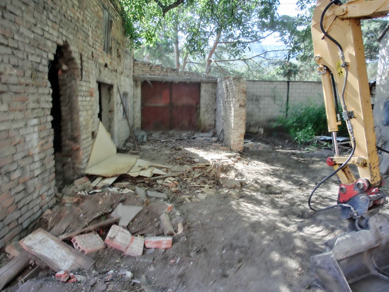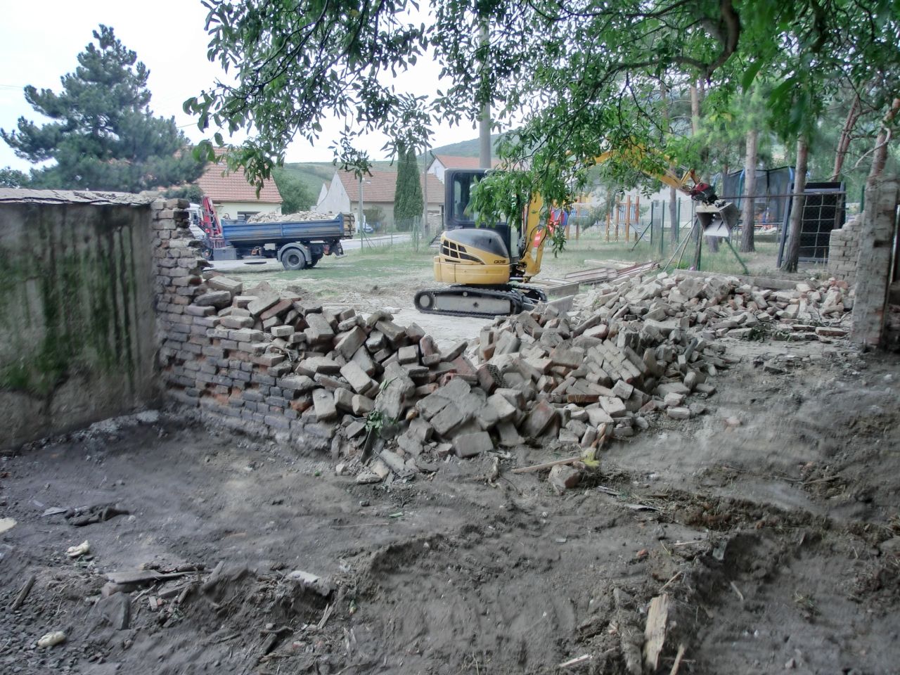 Zbourání staré garáže u MŠ